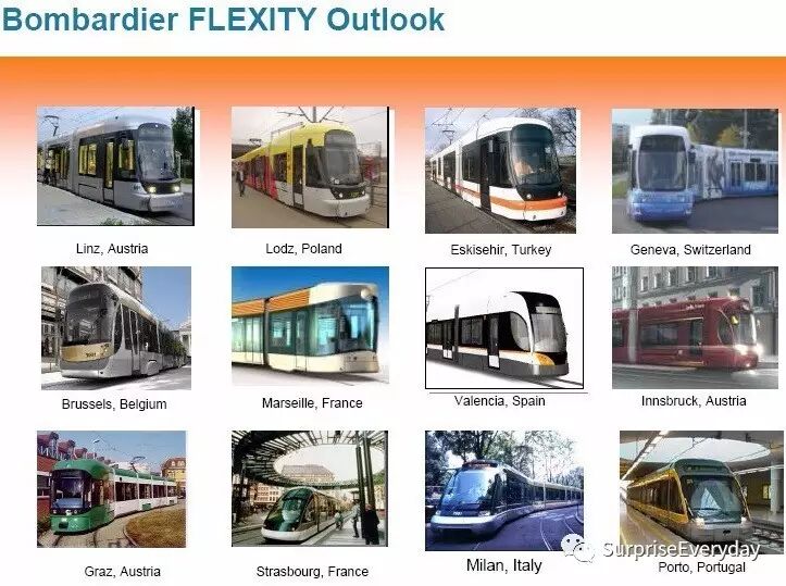 第八节 当今世界主流低地板有轨电车 闲言少叙,书接上文。 从低地板有轨电车发展历史上看,曾经有十几个厂家生产出二十几种型号的100%低地板轻轨车,但是随着几大工厂的兼并与整合,优胜劣汰,目前总体上看有四大知名度较高的品牌,是哪四家来着?请往下看。 1、庞巴迪公司 在有轨电车这一块,提起庞巴迪,要是不提一下Adtranz公司,总觉得有点对不住人家,虽然被庞巴迪公司收购,但Adtranz公司在100%低地板有轨电车诸多开创性设计方面,所做的贡献是不能随着公司的并购而在我们心中消失的。 庞巴迪公司只有Flexity outlook系列是100%低地板车辆,目前已是第二代产品,被国内某公司引进。 另外有两个是70%低地板产品和一个50%低地板产品。 2、西门子公司 目前Siemens公司在市场上有三种低地板产品,分别是Combino、Avanto、ULF。 2.1 咱们倒过来说,ULF就是那个维也纳的超级低地板,共100列,于1995年投入使用。该车的地板面高度只有197mm。并非主流,我们也不多说,上一张图。 2.2 Avanto系列实际上是70%低地板产品,运用于特拉维夫(以色列)、圣地亚哥、休斯顿、加里弗尼亚等城市。